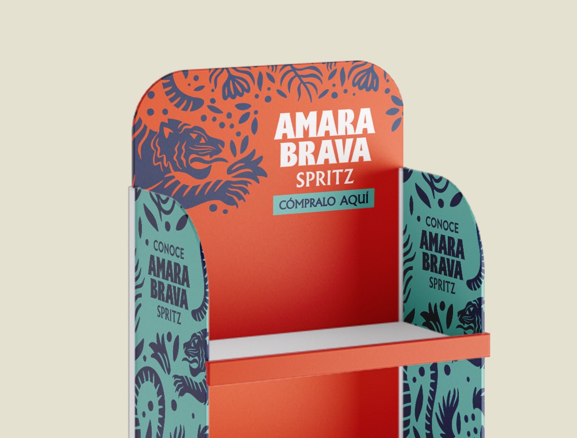 Manteniendo unos visuales y recursos unificados, Amara Brava consigue diferenciarse de la competencia en el punto de venta, posicionándose como la elección ideal para quienes buscan un spritz de calidad listo para disfrutar.